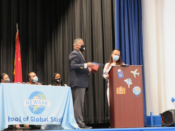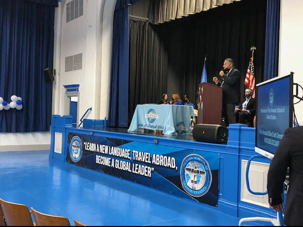 The Inaugural NSGS Blue Coat Ceremony was successfully held on Friday, June 18th, the program symbolized the trust between all of our staff and students as they receive their NSGS Passport to the World while sporting their new Blue Blazers for the first time as NSGS Ambassadors. Each student took an Oath and began by taking a tour around the world with the projects completed by the students on the various countries. Furthermore, it signified the beginning of our Global Studies students' journeys to Learn a New Language, Travel Abroad and Become Global Leaders as problem solvers for the world!