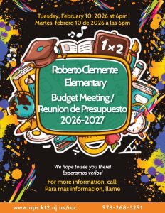 Roberto Clemente Elementary School – 26-27SY Community Budget Meeting Tuesday, February 10, 2026 at 6pm Reunion de Presupuesto Escolar 2026-2027 Martes, 10 de febrero a las 6pm