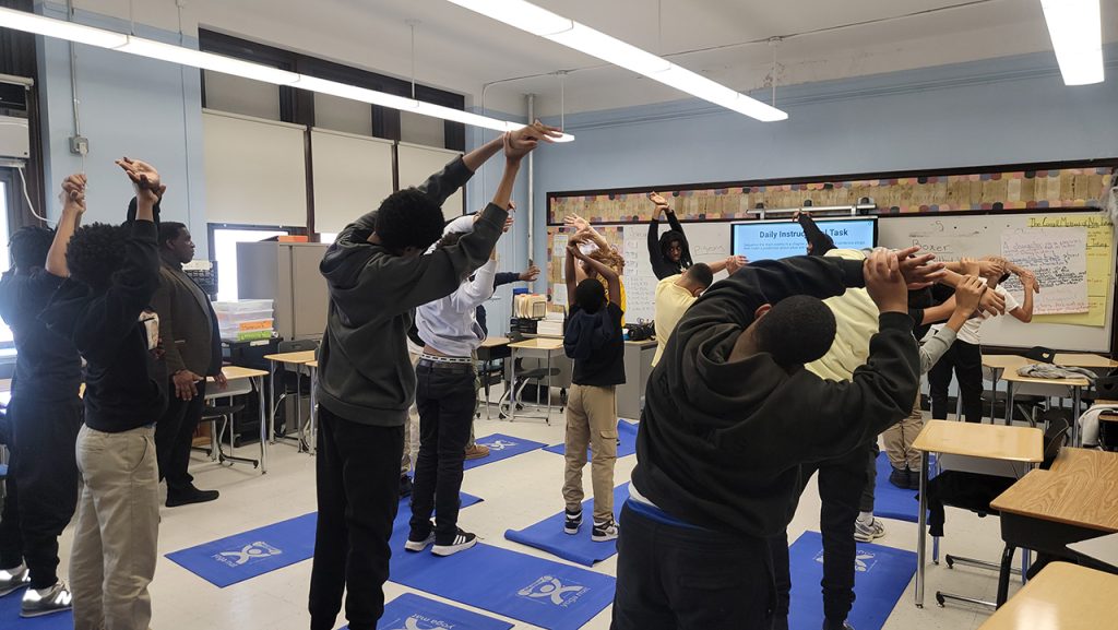Students at Roberto Clemente School participated in the Alpha Phi Alpha Fraternity, Inc. “Young Kings” mentoring program and practiced mindful meditation during yoga poses and deep breathing exercises. Mental Health, “Always Maintain your Peace” was the ongoing theme in honor of Dr. Martin Luther King, Jr. who was also a member of the illustrious fraternity. Next month’s mentorship theme is Leadership in honor of Black History Month.